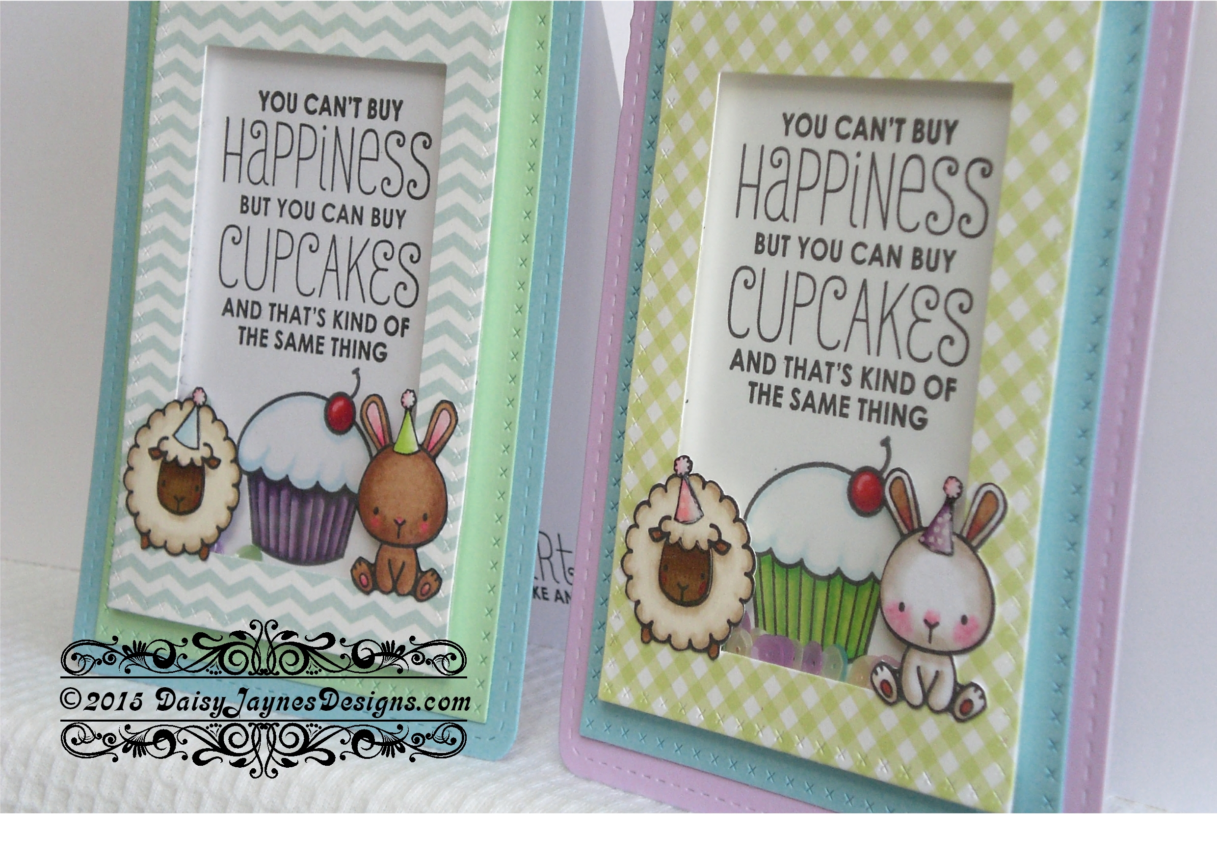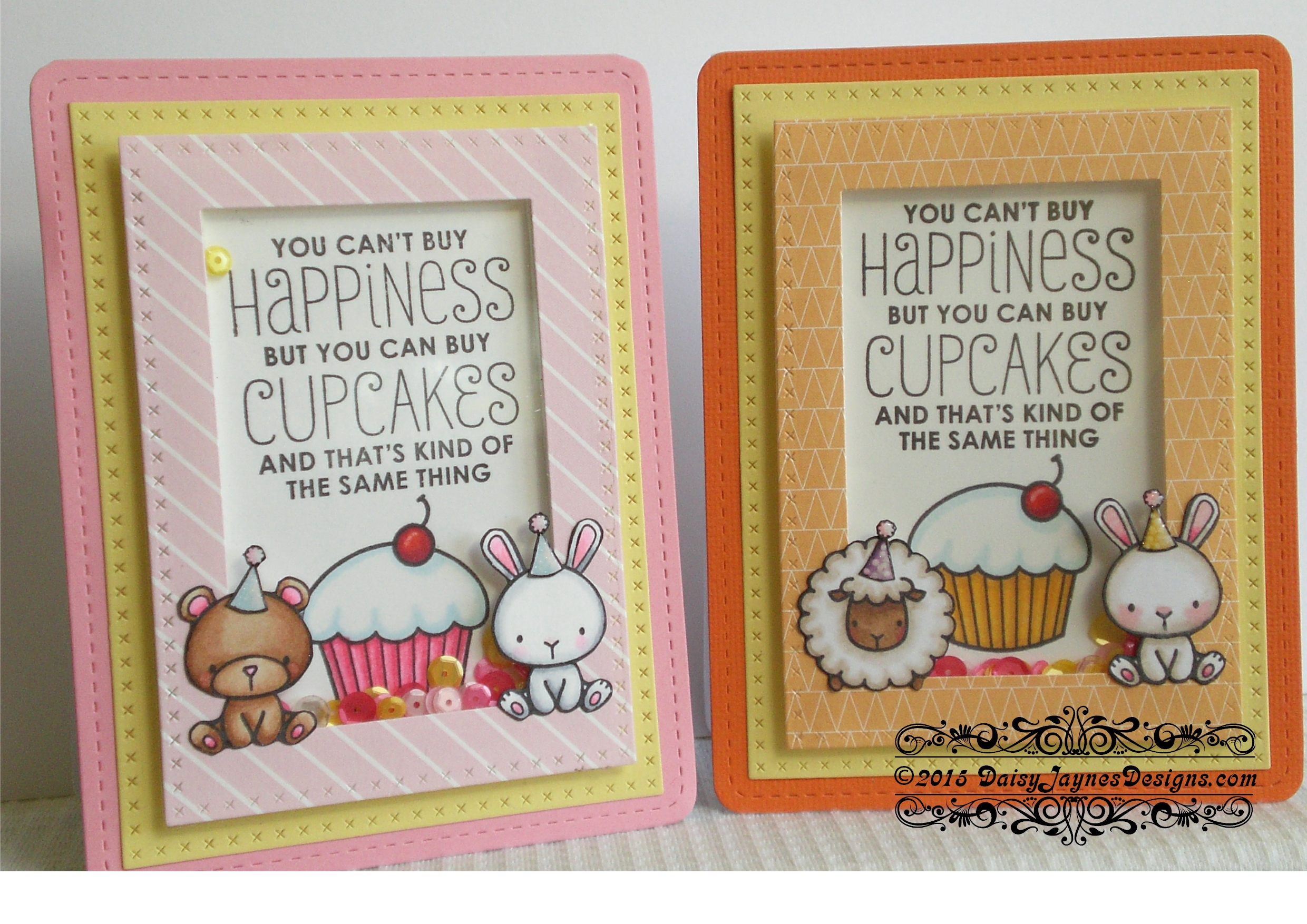 I have used another Mama Elephant stamp set called ‘Carnival Cupcakes’ and created four shaker cards in different colour ways. I think they look yummy….!