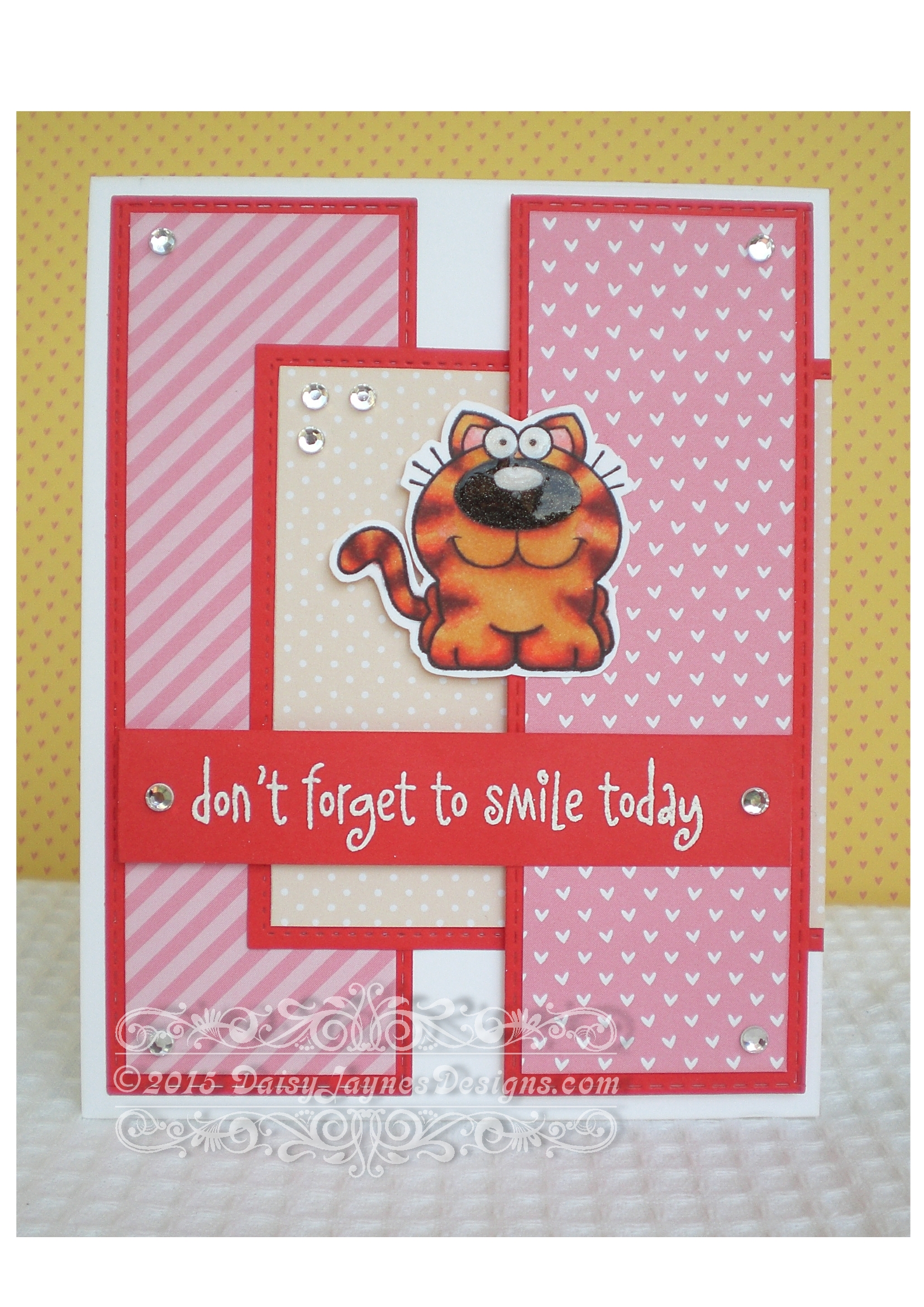 Today I have been happily crafting away and the weather is amazing! “Summer” – you gotta love it!!! Any how, I thought I would share with you 3 cards I have made. I used images from two ‘Your Next Stamp’ sets – Smiley Happy Critters Two #CD008 and Smiley Happy Critters Crew Set Three #CD009. For all 3 cards I have used the YNS card sketch challenge #17 and have entered one of them for a chance to win some yummy vouchers!
